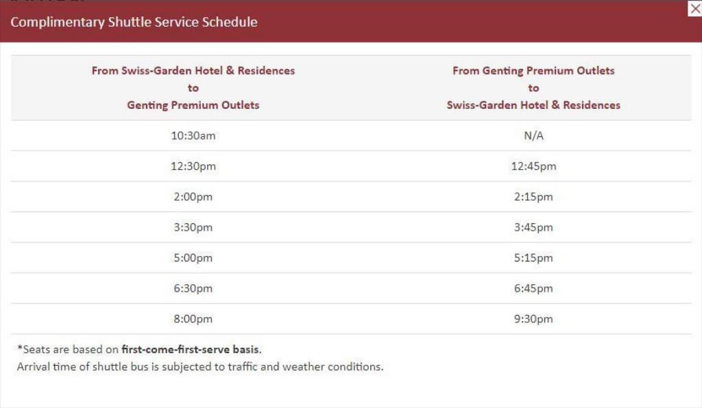 酒店是坐落在Gohtong Jaya, 需要自己驾车或坐Shuttle 到Genting Premium Outlets. 如果是自己驾车,酒店内有免费停车位。