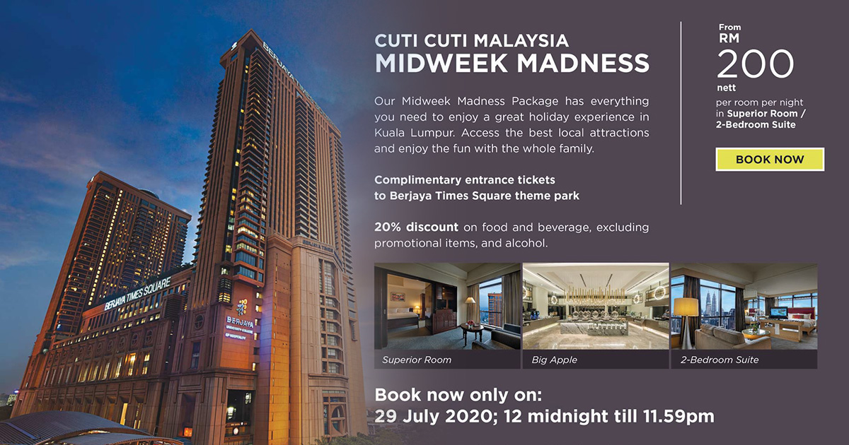 【闪电促销】Berjaya Times Square Hotel一晚只需RM200nett 送室内主题乐园入门票!