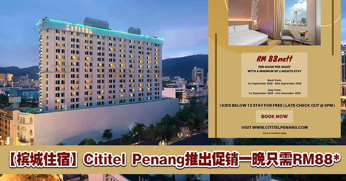 Cititel Penang推出优惠,一晚只需RM88而已!(平常RM128起跳)12岁以下的小孩免费入住!而且最重要就是可以Late Check Out 3PM!可以游玩槟城到最尽!